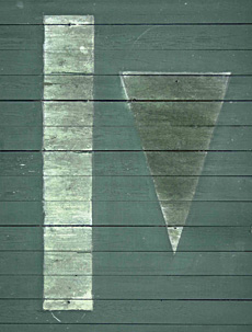 Vornehmlich geht es um zweidimensionale Symbole: von flachen Schildern, über dünne Aufkleber bis zu entmaterialisierten Erscheinungen – als Schatten einerseits wie nur mehr als Erinnerungsspur einer vormaligen Existenz andererseits. So etwa im Fall von Zeichen, wo deutlich sichtbare Nagellöcher ihr Entstehen zwar erklären, doch zugleich auch die Unlösbarkeit jeglicher Deutungsversuche offenbaren.