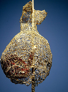 Die Linie bleibt keineswegs an die Fläche gebunden. In Drahtarbeiten wie Frauenkörper schwanger von 2008 erobert sie als ein Gespinst mit Acrylüberzug den Raum. Ein weiblicher Torso erscheint – typisch für die Künstlerin – entindividualisiert wie ein Prototyp einer Gattung. Der Körper selbst ist aufgelöst. Allein seine „Haut“ und damit die Grenzfläche zum Raum ist ansichtig. Das neue Leben in ihm zeigt sich in der selben Art nur in anderer Farbe. Wie schwerelos schweben diese zarten Gestalten fast wie ungreifbare Erinnerungen oder Vorstellungen einer schützenswerten Existenz.