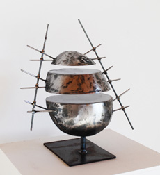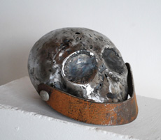 Vergänglichkeit bestimmt die bildhauerischen Werke. Das Material der Wahl, Metall, ist mit sichtbaren Schweißspuren verarbeitet; die Oberflächen sind auf vielfältige Weise, etwa durch Schleifen, Polieren oder Bläuen charakterisiert. Wie in der Malerei geht es auch hier, selbst bei realistisch anmutenden Arbeiten, nicht um Abbildhaftigkeit – vielmehr entstehen freien Assoziationen und Interpretationen offene obskure Objekte. Ein mit einem rostigen Kinnriemen eigentümlich verfremdeter Totenschädel erinnert an die menschliche Endlichkeit und hinterfragt das Leben. Der Glanz des harten Stahls ist durch Schweißpunkte und Löcher aufgebrochen; selbst dieses Material offenbart seine Verletzbarkeit.