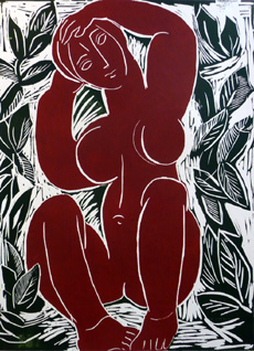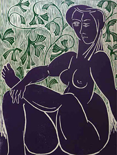 Heinrich Schüler, Inanna im Garten, Holzschnitt
